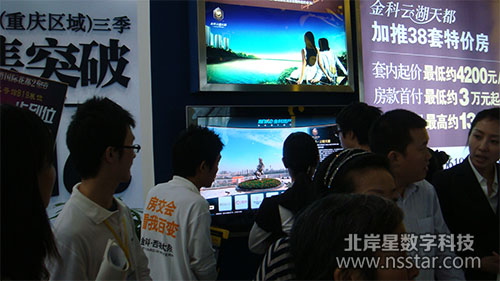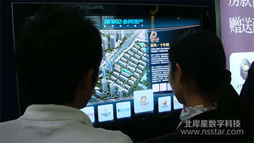 金科展廳共安裝兩臺(tái)42寸液晶電視顯示多媒體軟件,互動(dòng)和查詢軟件的顧客絡(luò)繹不絕,給樓盤帶來(lái)很好的民法效果。