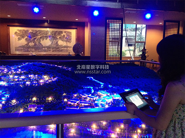本系統(tǒng)包含iPad電子樓書一套、iPad中控系統(tǒng)、iPad沙盤燈光控制系統(tǒng)、沙盤燈光場景渲染系統(tǒng)、影音播放室。沙盤場景燈光氛圍體現(xiàn)了整個別墅區(qū)從清晨、到正午、晚霞、日落、萬家燈火、月光等幾個階段的氛圍自動轉(zhuǎn)換。