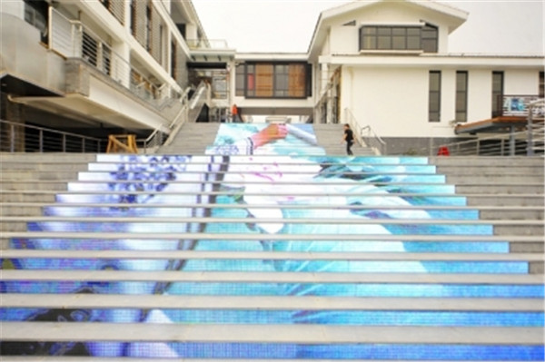 位于佛山陶瓷城的LED樓梯屏,擁有120度大視角觀看效果,可以清晰地觀看波光粼粼、花團(tuán)錦簇、魚兒戲水、自制的廣告視頻等畫面,讓普通的樓梯變幻莫測(cè)。