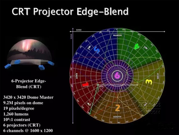 1939年,在紐約舉行的一次世界博覽會上,有人用五臺放映機把一幅幅巨大的合成畫面放映在半球形的銀幕上,當(dāng)時,看到這種電影的人們紛紛贊嘆不已。第二次世界大戰(zhàn)中,有的國家曾經(jīng)把敵機的形象放映在這種穹形銀幕上,供防空訓(xùn)練用。70年代才發(fā)展成全穹形。