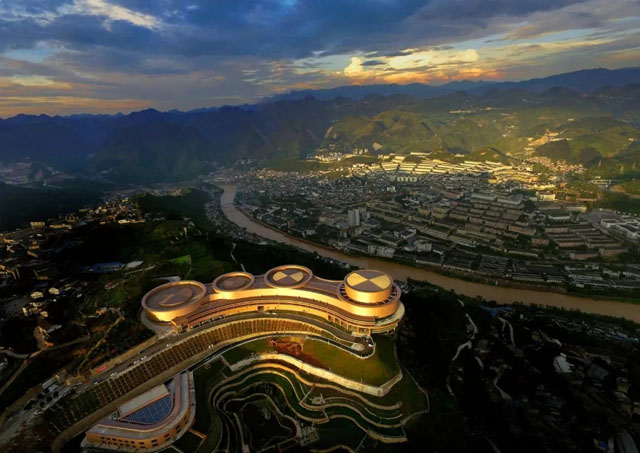 茅臺國酒文化主題景區(qū)《天釀》位于茅臺鎮(zhèn)西山,由懷仁市政府和利亞德勵豐文化共同投資建立,旨在把茅臺小鎮(zhèn)打造成“貴州第一、全國一流、世界知名”的特色小鎮(zhèn),是貴州“十三五”重點(diǎn)文化產(chǎn)業(yè)項(xiàng)目。項(xiàng)目總投資近6億元,總用地面積達(dá)7.6萬平方米。為了同時滿足存量酒商的客人體驗(yàn),和提升增量的旅游客源需求,勵豐文化設(shè)計(jì)了一個酒壇和三個酒碗作為劇場的建筑形態(tài),成為茅臺的一個地標(biāo),旨在打造成為市民休閑、政企接待、商旅觀光三個客群的共同目的地。