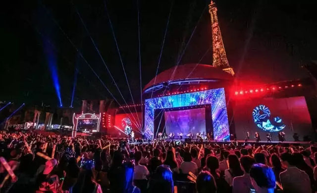 演唱會現(xiàn)場科技感滿滿,在現(xiàn)場多塊立體屏幕的環(huán)繞下,不同二次元世界的經(jīng)典場景肆意變換,現(xiàn)場觀眾也跟著場景的變換自由穿越在不同的異次元空間中,從涂山到靈魂之海再到龍虎山下,經(jīng)歷了一場刺激又夢幻的時空之旅。