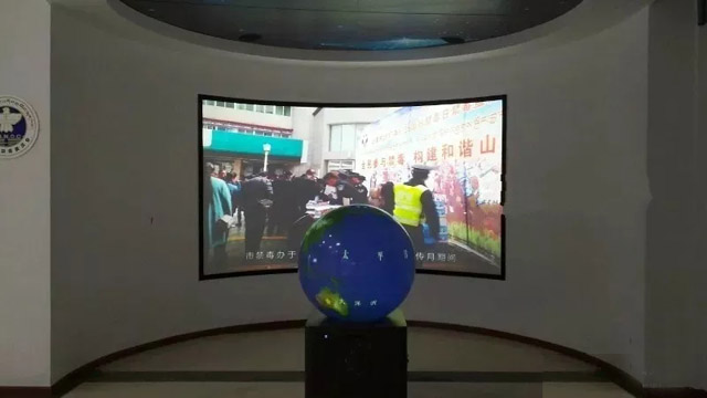來賓通過點擊球面地理位置,則大屏播放相應(yīng)地區(qū)禁毒相關(guān)視頻。