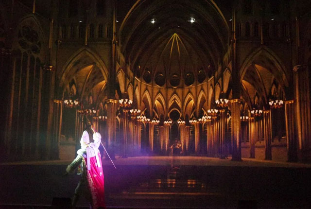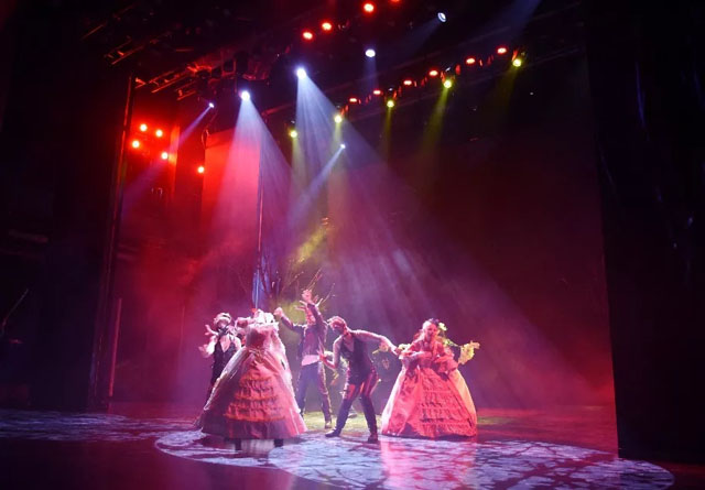極具異域風(fēng)情的意大利魔幻劇在劇場(chǎng)內(nèi)首演,明和先進(jìn)的聲光電系統(tǒng)為該劇營(yíng)造出時(shí)光穿梭般的奇幻景象,在舞臺(tái)燈光、顯示屏、紗幕投影、舞臺(tái)機(jī)械的相互配合與渲染表現(xiàn)之外,再加之參與式角色體驗(yàn)、沉浸式互動(dòng)體驗(yàn),帶領(lǐng)全場(chǎng)觀眾穿越到了神秘的奇幻世界。