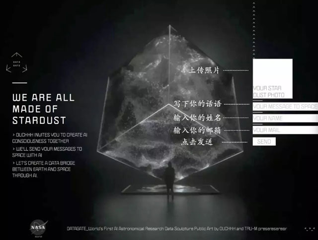 科學(xué)的數(shù)據(jù)基礎(chǔ)加上藝術(shù)家的腦洞大開(kāi),吸引了NASA(美國(guó)太空總署)外系行星研究中心負(fù)責(zé)人Dawn Gelino女士的加入,Dawn Gelino女士給予設(shè)計(jì)過(guò)程中的科學(xué)指導(dǎo),她認(rèn)為Ouchhh在以一種全新的、獨(dú)特的方式進(jìn)行創(chuàng)作,而"Data Gate"正是藝術(shù)和技術(shù)天衣無(wú)縫的融合體現(xiàn)。
