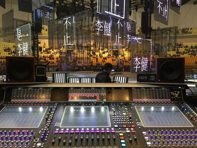 演唱會(huì)主擴(kuò)調(diào)音臺(tái)和監(jiān)聽調(diào)音臺(tái)均采用DiGiCo SD7,具有強(qiáng)大的音樂(lè)制作能力;另外,高處理能力加上雙引擎特性,使它可以在一臺(tái)調(diào)音臺(tái)里完成鏡像備份,為演出提供安全保障。