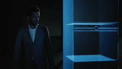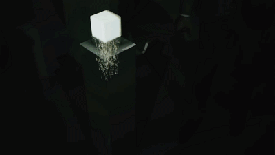 影片中,一個(gè)男人走進(jìn)昏暗的房間,拾起一個(gè)散發(fā)著微弱光芒的小白盒,當(dāng)他將它放置在一座棱柱體上時(shí),奇跡的一幕發(fā)生了!光盒內(nèi)的光束如同粒子般向下散落并不斷向周圍擴(kuò)散,周圍的環(huán)境也隨之發(fā)生變化,跟隨主角的推進(jìn)變幻出各種科技裝置,森林,乃至整座城市。