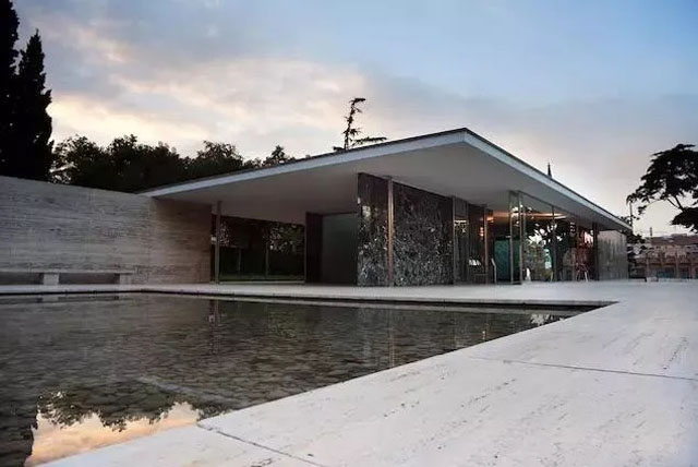 這座“巴塞羅那德國館(Barcelona Pavilion)”的原型由德國現代主義建筑師路德維!っ芩埂し驳铝_(Ludwig Mies van der Rohe)設計,由于所處的歷史時期、以及建筑風格,這座建筑在現在主義建筑史上有重要意義。由于是臨時建筑,它在世博會之后被拆除,又在 1980 年被西班牙建筑師重建。