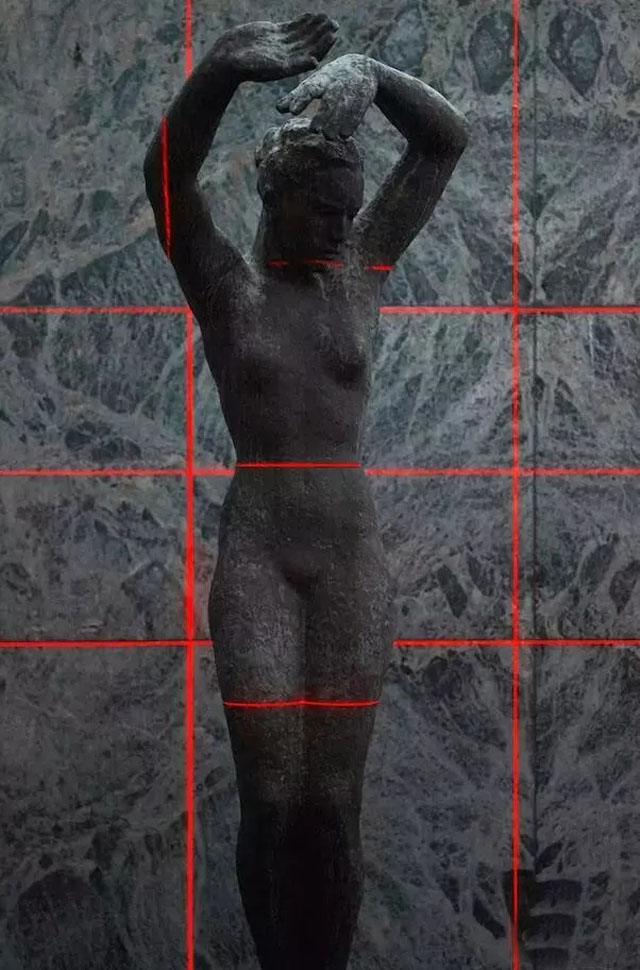 燈光下的“黎明”雕塑