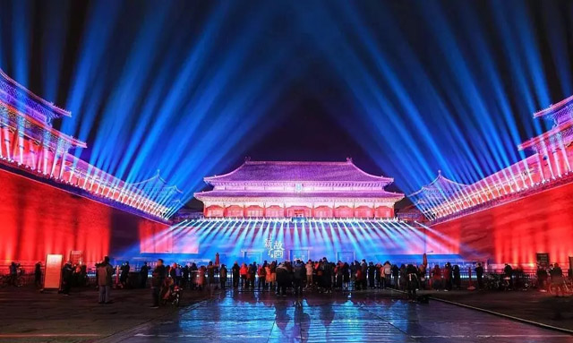 通過燈光照明及燈光布景,紫禁城內(nèi)的午門—雁翅樓、太和門、太和殿、東南角樓、東華門、東北角樓、神武門等區(qū)域霓虹閃耀,游客可在晚間游覽紫禁城。