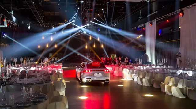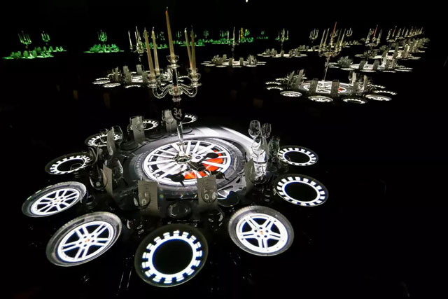 發(fā)布會(huì)現(xiàn)場(chǎng)除了有交響樂表演,還為客人準(zhǔn)備了餐桌投影秀,以此來展現(xiàn)新車卓越的性能。