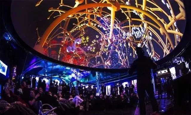 “在五個圓頂中,其中兩個包括360度投影測繪技術(shù),最大圓頂?shù)闹睆綖?0英尺,最多可容納500人。 這些圓頂已經(jīng)在全球各地以及“火人節(jié)”,“科切拉音樂藝術(shù)節(jié)”和“ Lightning In A Bottle”等活動中展出。