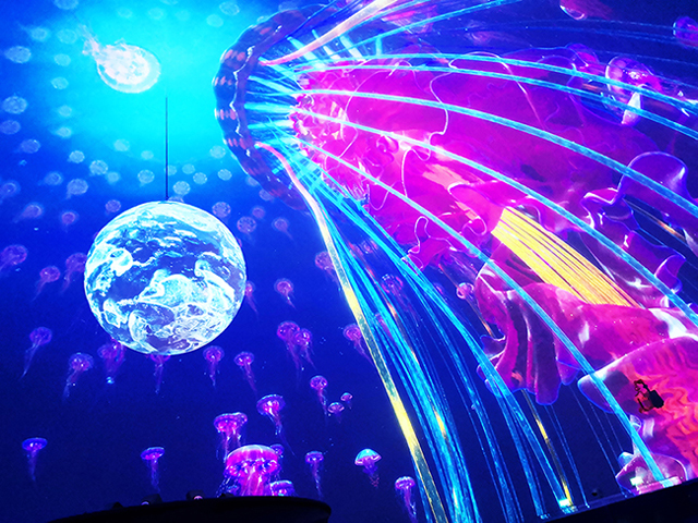 在球幕投影領(lǐng)域,贏康擁有豐富的項(xiàng)目經(jīng)驗(yàn),曾先后參與過陜北民歌博物館球幕影院、“夢幻長城”球幕立體影院、上海世博會地球館、南昌萬達(dá)海洋公園球幕影院、湖南博物館“五星占”球幕、柳州卡樂星球球幕影院、龍宮大白鯨嬉水世界穹頂球幕影院等多個(gè)球幕影院的投影設(shè)計(jì)工作。雖然海昌的雙球嵌套式球幕影院非常創(chuàng)新獨(dú)特,但是憑借著以往的經(jīng)驗(yàn),贏康仍然出色完成了該項(xiàng)目的投影設(shè)計(jì)工作,讓《時(shí)空之!诽炷挥霸撼蔀榱松虾:2珗@的亮點(diǎn)項(xiàng)目。