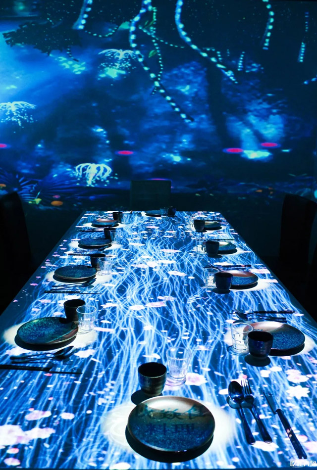 如此精致的餐廳是不是想拖家?guī)Э谝黄饋眢w驗?完全不用擔(dān)心坐不開哦,店里有單獨的包間,而且包間的墻壁和餐桌全是投影幕布,聚餐氛圍蹭蹭起~只要開始上菜,這里就會搖身一變,成為夢里看到的世界...