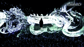 參觀者自由走動在被投影所包圍的空間中,以光描繪出的八咫鳥盤繞于周圍,它的軌跡化為光線并描繪出別樣的景色。八咫鳥互相追逐飛翔,追逐中的八咫鳥很快地成為了被追逐者,當(dāng)他們互相碰撞時,便會化成花朵消散而去。