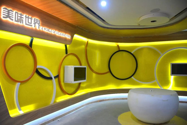 此外,恒潤集團為周黑鴨園區(qū)創(chuàng)意設計并打造了全新品牌展廳、生產車間參觀通道及休息區(qū)。通過一條完整的參觀線路,全面的介紹周黑鴨、企業(yè)文化、發(fā)展歷程、企業(yè)榮譽等,全方位展示周黑鴨現(xiàn)代化安全智能生產流程和科技鎖鮮的工序工藝。在創(chuàng)意設計時,恒潤保留周黑鴨對生產工藝和對食品安全細節(jié)的追求,以展示真實的生產車間實景,向游客普及食品生產工藝和衛(wèi)生安全知識。