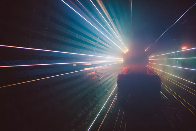 跑車在激光效果、煙霧、五彩紙屑大炮和半透明led屏幕襯托的效果下出現(xiàn)在觀眾視野中。