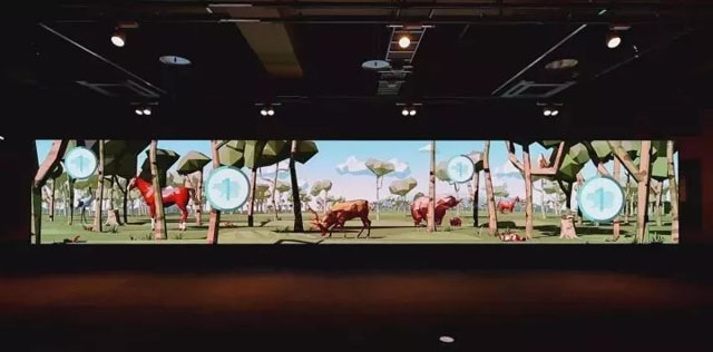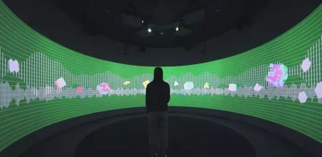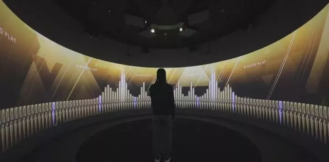 今天我們主要來介紹一下這兩大展項(xiàng):一個(gè)是大型的LED互動(dòng)墻,另一個(gè)是360°的環(huán)幕試聽互動(dòng)體驗(yàn)空間。