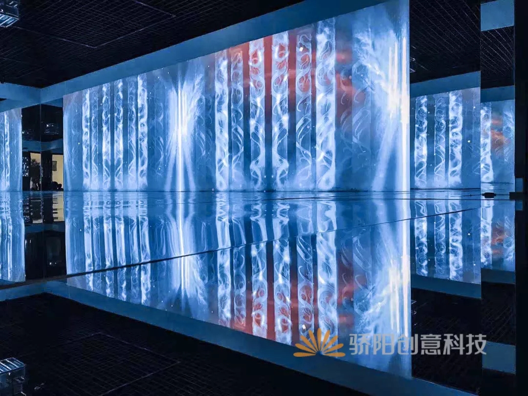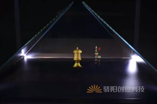 法門寺地宮出土的金銀茶器以裸眼3D畫面呈現(xiàn),全息影像在空中懸浮,絢美科幻,極富科技感。