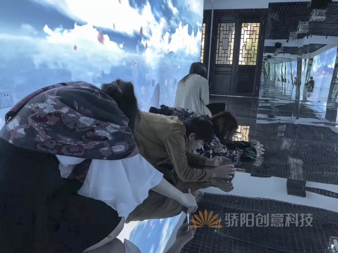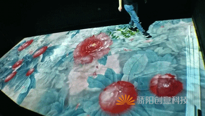 能夠感應(yīng)觀眾的腳步,隨步腳踏地面上的牡丹隨之“盛開”,滿滿的黑科技即視感,十分亮眼,吸引嘉賓紛紛體驗。