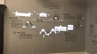 漢口英租界歷史建筑展示館中采用觸摸電容墻形式,將互動內(nèi)容融入展板。從漢口英租界建筑風格變遷、建筑細部對比到歐洲經(jīng)典建筑科普,參觀者只需觸摸相應區(qū)域,就會有新穎有趣的光影效果出現(xiàn)在眼前。尤其是不同歷史時期的建筑風格,及門、窗、立柱、外墻雕飾四種典型建筑細部,手繪線稿簡單形象的勾勒,再通過電容墻實現(xiàn)互動效果。