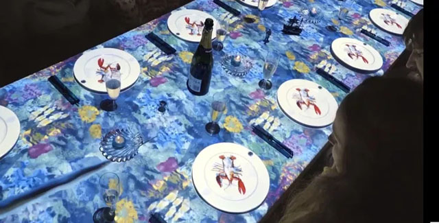 桌面互動投影主要應(yīng)用與主題餐廳互動投影,桌面互動投影讓普通的桌面變得鮮活起來,成為一個娛樂中心和信息資訊平臺。食客可在主題餐廳的桌面互動投影上觀看美食制作,以及點(diǎn)餐,并且在進(jìn)餐過程中,通過桌面互動投影與地面互動投影,墻面互動投影三者相結(jié)合,打造沉浸式空間,讓食客仿佛置身于各種場景中就餐,趣味連連!