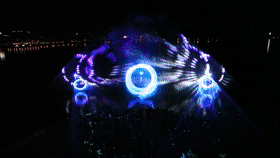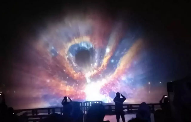 此次水幕投影秀中,投影介質(zhì)由三個(gè)扇形水幕組成,使用3臺(tái)EPSON CB-L23000U 23000流明高清工程投影機(jī),以投影技術(shù),讓水霧成為了可成像的幕布,呈現(xiàn)出讓人目不轉(zhuǎn)睛的視覺效果。