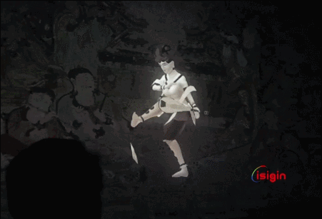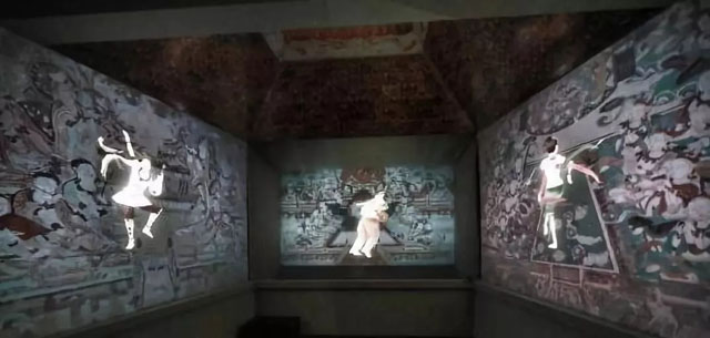 用CG技術(shù)復(fù)原石窟壁畫中的人物形象,百分百提取真人舞蹈動作,借助全息投影,伎樂天隨著音樂的旋律,翩然起舞!