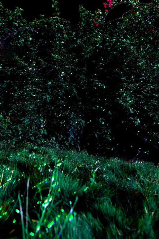 在這個童真展區(qū)中,抱樹燈、螢火蟲燈、趣味互動裝置,這里充滿了孩童的歡樂元素:飛舞田野上的螢火蟲,與星空交相輝映,叮叮咚咚小鋼琴,奏出清脆悅耳的音符,在青蔥草地畫下花、彩虹、各種小動物,七彩變幻的樹陣,像極少時探險的森林…………