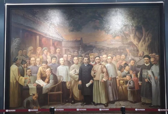 館內(nèi)穿越時空同框的佛山先賢展畫。佛山日報記者呂嘉怡攝