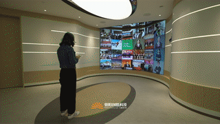 AR移動滑軌屏,對應(yīng)內(nèi)容展板,以數(shù)字化互動形式同步互動看板,讓參觀者輕松get體系內(nèi)容,提升觀看體驗。