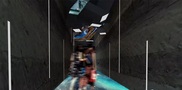 借助時(shí)空互動(dòng)隧道,讓參觀者體驗(yàn)穿越感,隧道的地面星光流動(dòng),像是走在時(shí)空隧道中,墻面演繹著當(dāng)?shù)氐牡刭|(zhì)元素億萬年來的變遷,即使靜止不動(dòng)也能感受飛速移動(dòng)變換。