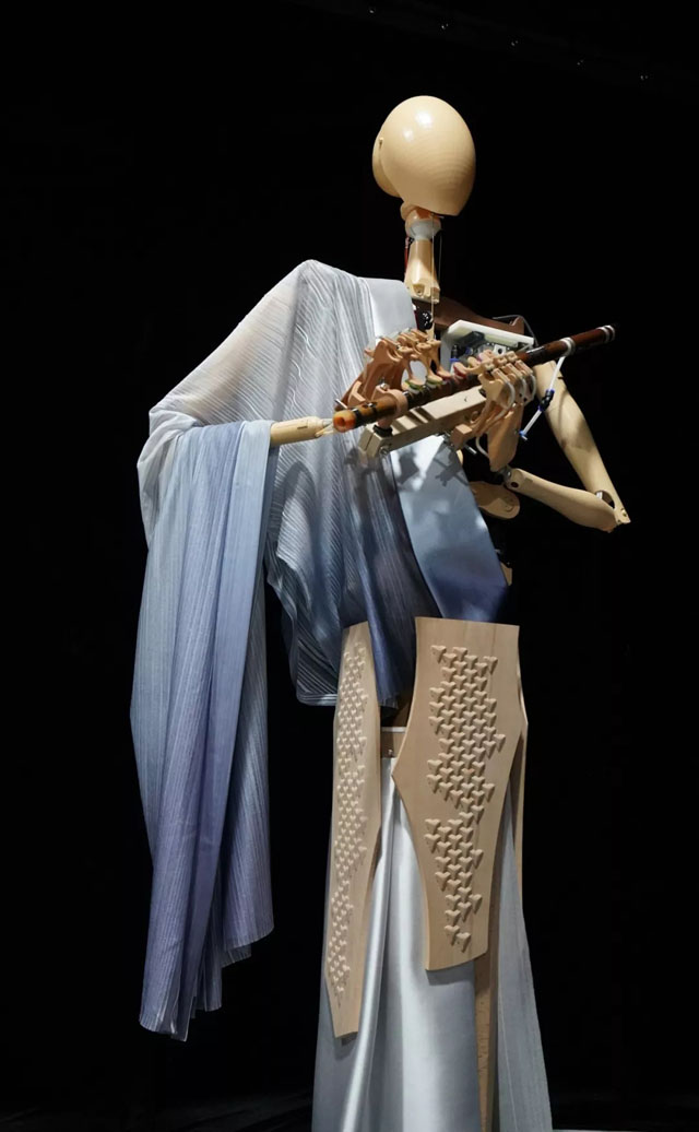墨甲機(jī)器人“玉衡”以清雅的笛聲傳遞著如詩的中國山水和悠悠的古韻情懷。