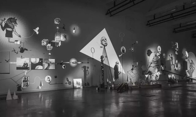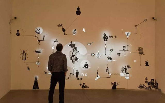 在墻面上制作出了一個不停運(yùn)轉(zhuǎn)的機(jī)械回路,如同人們想象中的“機(jī)械實(shí)驗場景或未來網(wǎng)絡(luò)計劃一般”。