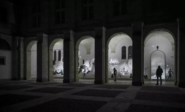 版畫藝術(shù)家福瑞德·佩奈爾(Fred Penelle)和影像藝術(shù)家楊尼克·雅凱(YannickJacquet)合作創(chuàng)作的投影裝置作品—《機(jī)械推論》(MécaniquesDiscursives)就像兩個時代之間的對話:古城堡和大數(shù)據(jù)。通過將最古老的圖像復(fù)制(木刻)形式與最新的數(shù)字技術(shù)相結(jié)合,進(jìn)行了一場跨越了幾個世紀(jì)的話。