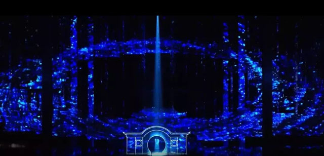 設(shè)計立意前期,張藝謀導(dǎo)演摒棄了傳統(tǒng)舞美以顯示大屏為主的舞臺設(shè)計方案,幾經(jīng)易稿,刪繁就簡,最終確定把洲明薔薇格柵屏“超級圓月”作為載體,融入三峽舞臺的山水之間。