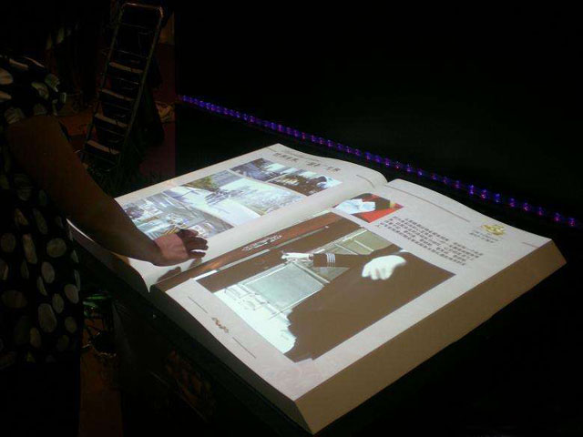 試想一下,桌面上放著一本翻開的虛擬圖書,當觀眾伸手做出翻書的動作時,會驚喜地發(fā)現(xiàn)這本虛擬圖書竟然真的可以翻頁,在這其中不但有栩栩如生的動態(tài)翻頁效果及音效,更加存放著動畫、視頻、圖片等多種豐富的資料供人查閱。而這種技術,現(xiàn)今為止往往常見于展館、陳列館當中,一本可以翻頁的電子書,可以瞬間讓展館變得書香滿溢又不失現(xiàn)代化色彩!