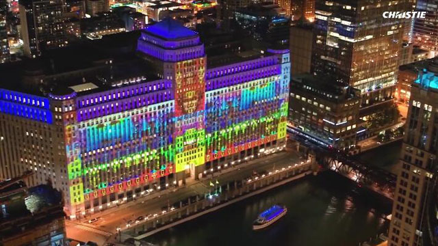 商品市場(chǎng)大廈(Merchandise Mart),芝加哥的地標(biāo)建筑,曾經(jīng)的世界最大建筑,如今可能是世界最大的永久數(shù)字投影項(xiàng)目。