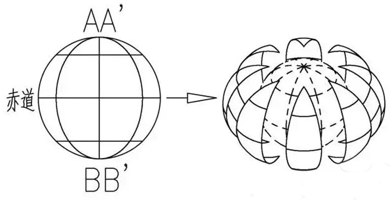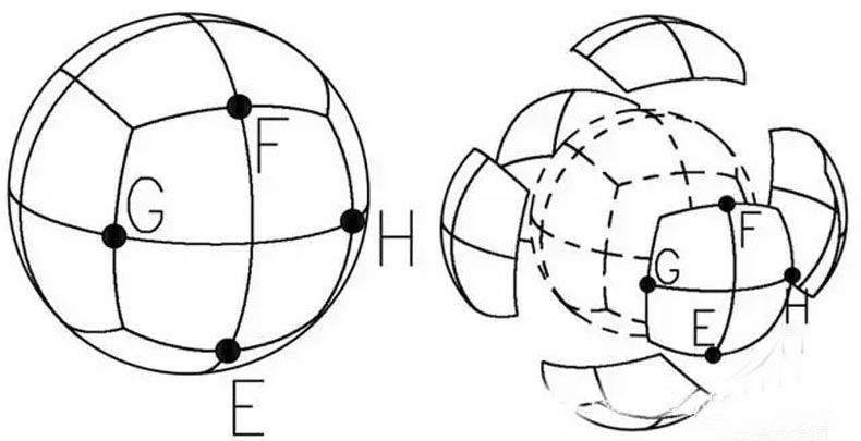 一、 全景球屏與西瓜皮球屏結(jié)構(gòu)與制作方法不同