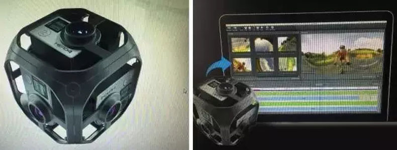 可喜的是近來(lái)一些國(guó)外的數(shù)字公司,如GOPRO、三星、諾基亞、索尼、360、谷歌、FACEBOOK等紛紛推出全景球面攝像機(jī),它們有的由多個(gè)攝像頭組成,將拍攝到的多幅視頻源通過(guò)軟件進(jìn)行無(wú)縫拼接得了優(yōu)質(zhì)全景球面的視頻源,見(jiàn)圖十。最具代表的是GOPRO與FACEBOOK公司的由六個(gè)攝像頭組成的全景球面攝像機(jī),使得獲取優(yōu)質(zhì)的球面視頻源變得非常容易,球面視頻圖像源采集與形成原理與目前全景球屏的結(jié)構(gòu)與播放原理非常的相似,見(jiàn)圖十?梢韵胂箅S著全景球屏推廣肯定會(huì)為全景球面攝像頭的應(yīng)用、推廣、發(fā)展提供一個(gè)絕佳機(jī)會(huì)。當(dāng)然反過(guò)來(lái)也對(duì)全景球屏來(lái)說(shuō)也是一個(gè)大利好,而這類(lèi)應(yīng)用對(duì)于西瓜皮球屏而言比較困難。