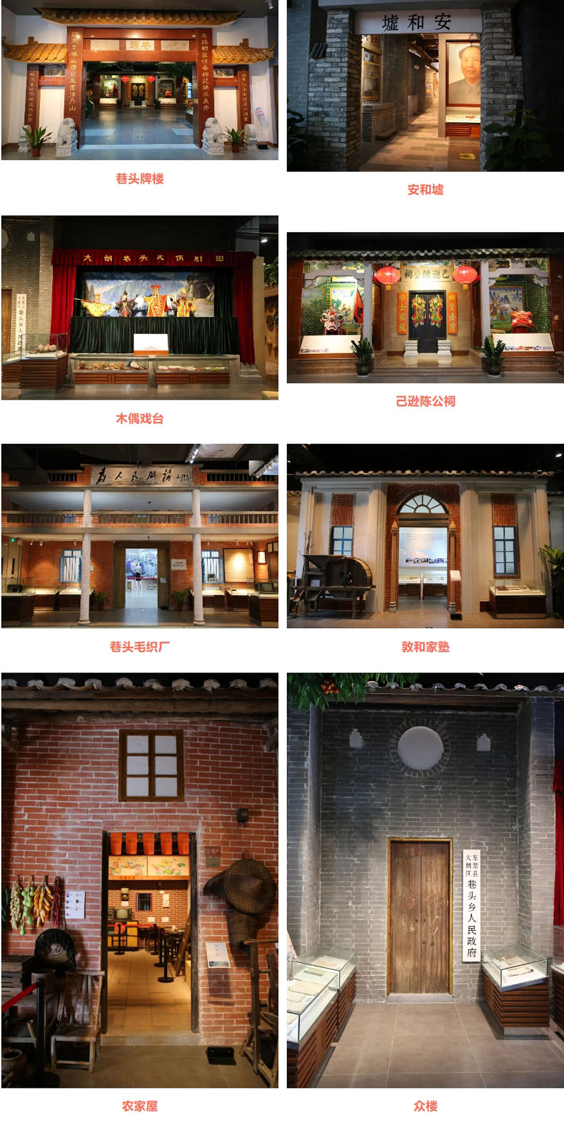復(fù)原巷頭牌樓、安和墟、農(nóng)家屋、木偶戲臺(tái)、眾樓、己遜陳公祠、敦和家塾,巷頭毛織廠等主題景觀、全面地反映了巷頭社區(qū)建國(guó)以來(lái)政治、經(jīng)濟(jì)、文化的發(fā)展歷程。