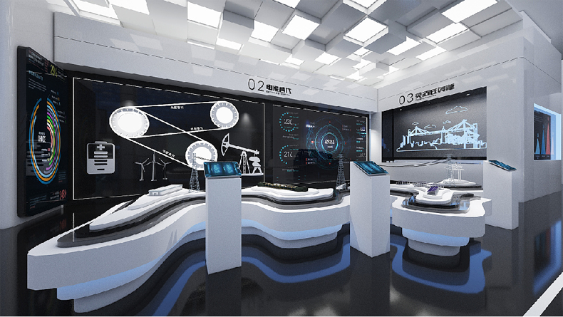 把靜態(tài)展面和動(dòng)態(tài)屏幕結(jié)合,實(shí)時(shí)對(duì)領(lǐng)導(dǎo)關(guān)懷層面的重大節(jié)點(diǎn)事跡加以展示。用logo燈體現(xiàn)出區(qū)位優(yōu)勢(shì)的重要特點(diǎn)。