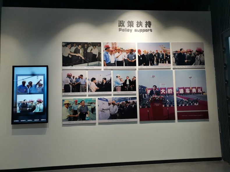 展示設(shè)計(jì):把靜態(tài)展面和動(dòng)態(tài)屏幕結(jié)合,實(shí)時(shí)對(duì)領(lǐng)導(dǎo)關(guān)懷層面的重大節(jié)點(diǎn)事跡加以展示。