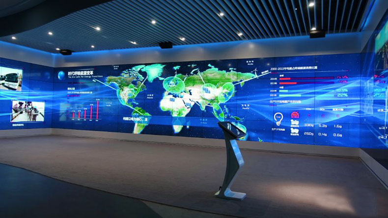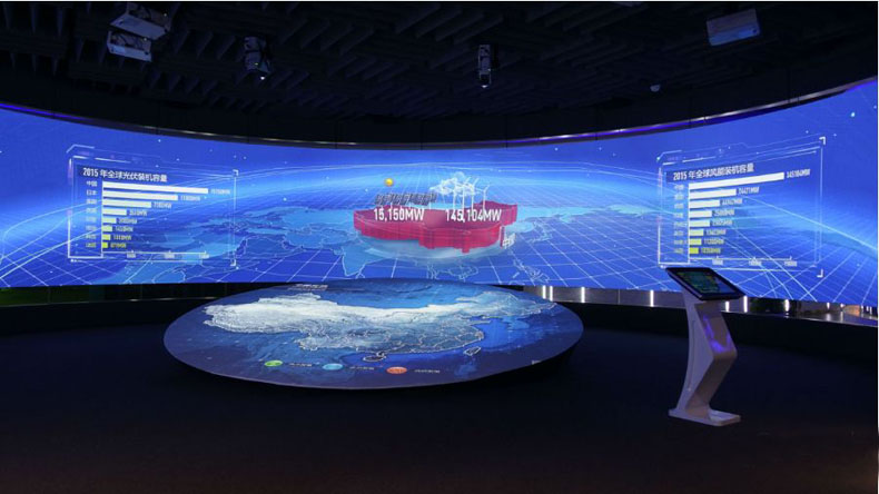 新能源和可再生能源發(fā)電可以用弧形大屏幕,觀眾就位后,顯示屏?xí)詣痈袘?yīng)并播放風(fēng)力發(fā)電、地?zé)岚l(fā)電、太陽能發(fā)電、海洋能發(fā)電等知識,以及輸電與配電的變電站、送電線路、高壓直流輸電(HVDC)等知識。家電小常識及節(jié)能小竅門可以用弧形大屏幕技術(shù)與觸摸屏來介紹,大屏幕出現(xiàn)一系列家用電器讓觀眾通過觸摸屏選擇并回答。