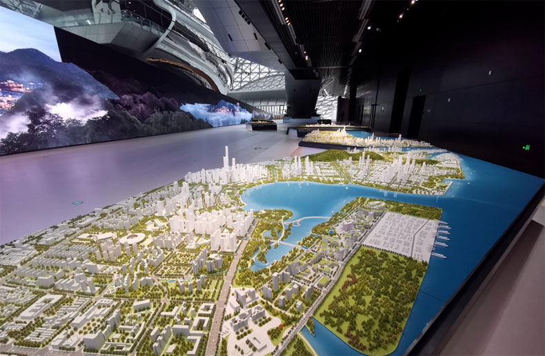 總體規(guī)劃展區(qū)用一塊塊洲明小間距LED顯示屏,詳細展示特區(qū)建立以來四版城市總體規(guī)劃,為觀眾解讀深圳生態(tài)優(yōu)先、彈性布局、區(qū)域協(xié)同的整體理念。