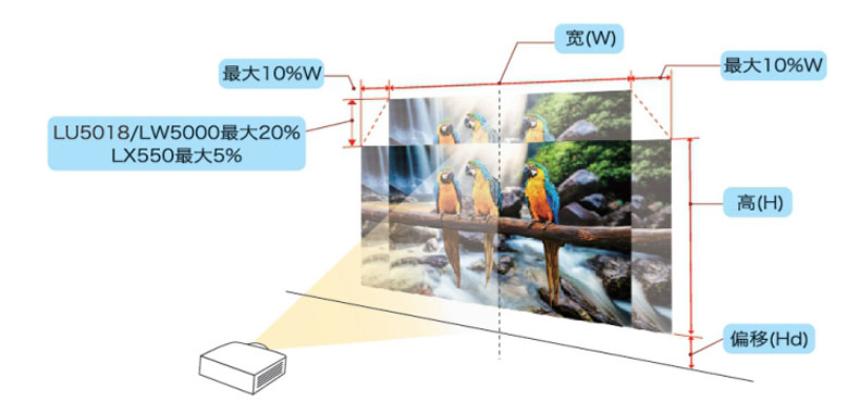 四款投影機均具有水平、垂直梯形校正/四角校正的功能,輕松使投射畫面成為矩形,不懼任何場地、角度投射放置難題。