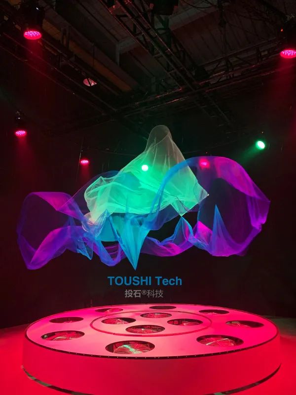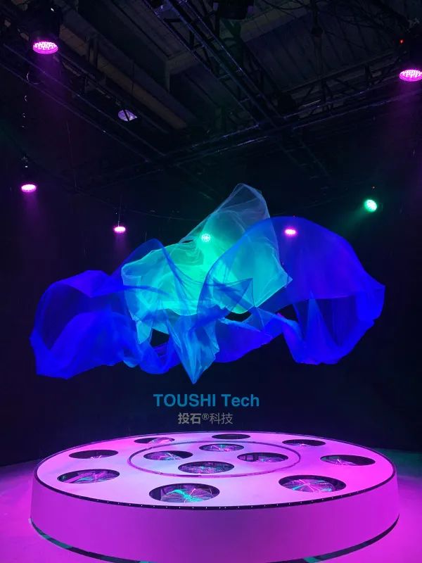 活動(dòng)中,投石科技通過對(duì)12臺(tái)電風(fēng)扇的精準(zhǔn)風(fēng)力控制內(nèi)環(huán)和外環(huán)的2塊紗幔,紗;(dòng)藝術(shù)裝置結(jié)合音樂和燈光,為觀眾帶來了一場實(shí)時(shí)的充滿藝術(shù)感的表演。