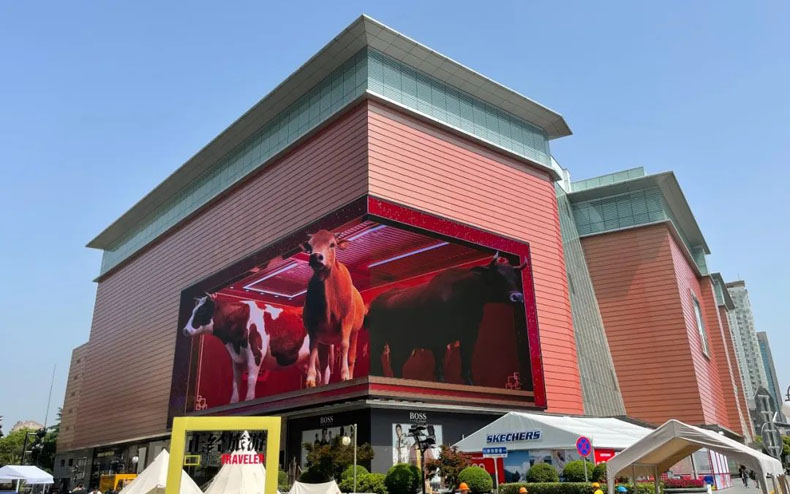 該戶外LED大屏采用了目前最高端的LED產(chǎn)品技術(shù)、信息集成技術(shù)、視頻播放技術(shù),實(shí)現(xiàn)了5G+8K前沿科技的組合,達(dá)到戶外逼真、超高清的裸眼3D顯示效果。