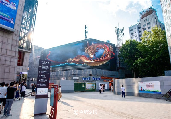 淮河路步行街于 2020 年 7 月入選全國第二批步行街改造提升試點名單,目前正通過全面的改造提升爭創(chuàng)全國示范步行街。此次落地的裸眼 3D 大屏極大提升了街區(qū) " 時尚感、科技感 ",成為廬陽區(qū)進一步開拓對外服務(wù)宣傳的新窗口。