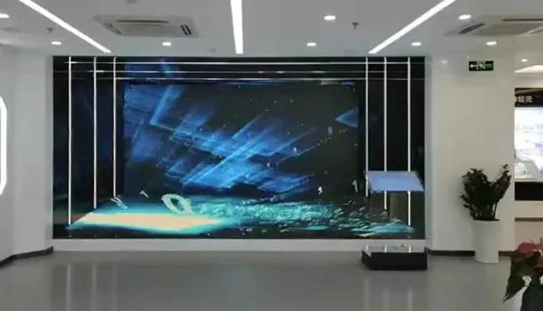 該屏為針對現場環(huán)境設計的P1.8L形創(chuàng)意展示屏,采用播放宣傳片時具備裸眼3D的效果,打破傳統(tǒng)LED拼接屏平面化觀感,給參觀者帶來一場視覺盛宴。